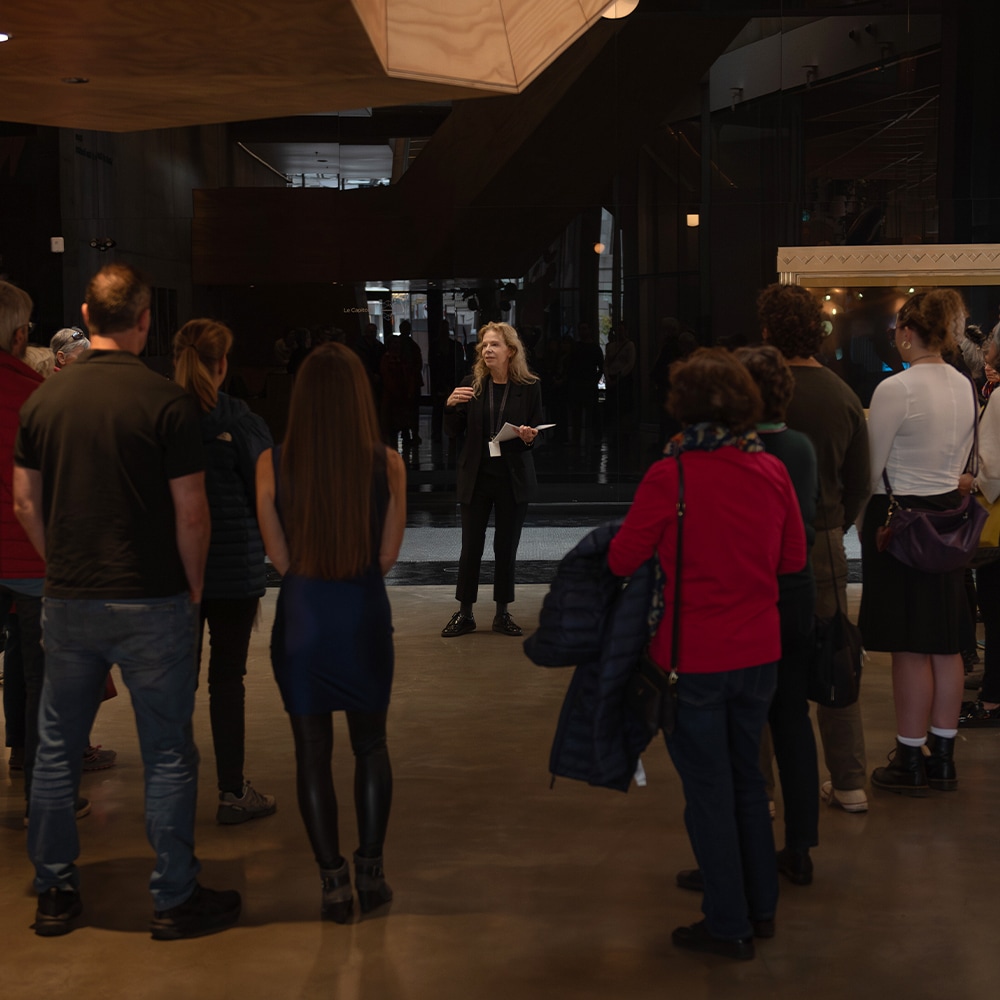This approximately 75-minute guided visit covers the history of the space from 1879 to today, the architecture of the building and its references to the past, the project from idea to inauguration, the thought process behind the programming, and more.