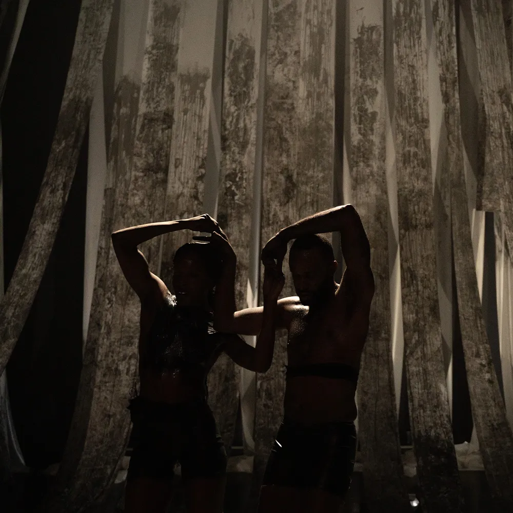 In DARKMATTER, Cherish Menzo and her onstage partner Camilo Mejía Cortés look for ways to detach their bodies from the way they are perceived and the daily reality in which they move. Among other things, they look up to the sky, at dark matter and at black holes that meet and collide to give birth to a new, (afro)futuristic and enigmatic body.