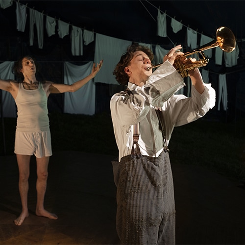 Circus Ronaldo est une troupe qui occupe une place particulière dans le cœur de nombreux spectateurs. Elle crée un type de cirque qui est nouveau, et pourtant indissociable de ses racines. À l’aide de traditions de jeu anciennes, de roulottes authentiques et d’objets des générations précédentes, réutilisés aujourd’hui, Circus Ronaldo rend hommage au théâtre circassien ancien. La troupe puise l’inspiration dans la commedia dell’arte et dans son amour du pouvoir qu’exerce sur l’inconscient le concept de tsukomogami, l’exploitation de l’âme de matériaux usés. Mais en même temps, en entrant dans le monde des Ronaldo, le public y découvre une familiarité, une évidence, un reflet de sa propre individualité vulnérable. Ainsi naît un univers de réalisme magique où les spectateurs ne savent plus ce qui est réel ou ne l’est pas. La compagnie sonde avec virtuosité les profondeurs de ses propres émotions, tendant de ce fait un miroir espiègle aux autres. Circus Ronaldo joue sur une expérience puissante du moment présent, parfaitement reconnaissable pour bon nombre de spectateurs, et associe la nostalgie à une réalité déroutante au fil d’une danse intime, passionnée, éternelle.